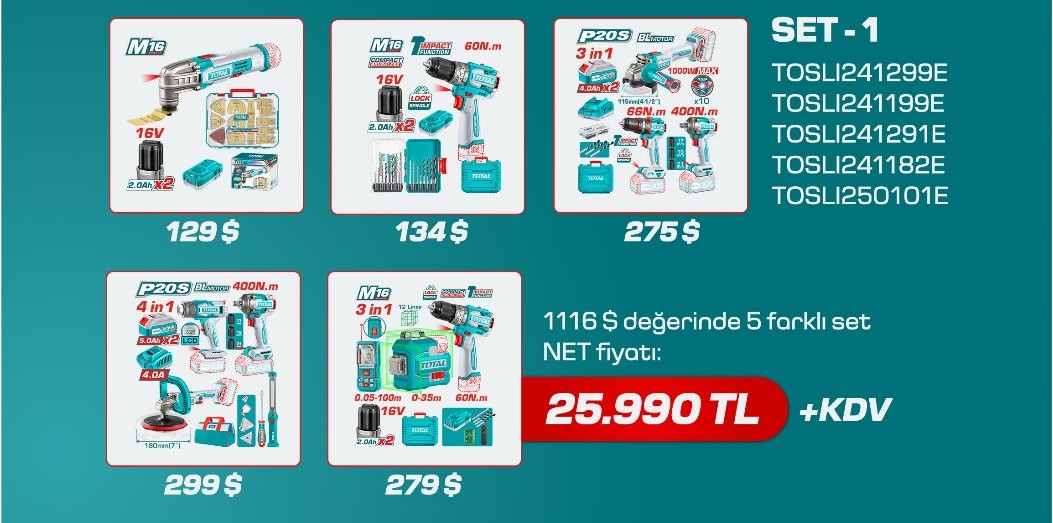 TOSLI241199E TOTAL AVANTAJ SET 16V DARBELİ MATKAP VE UÇ SETİ 1 SET