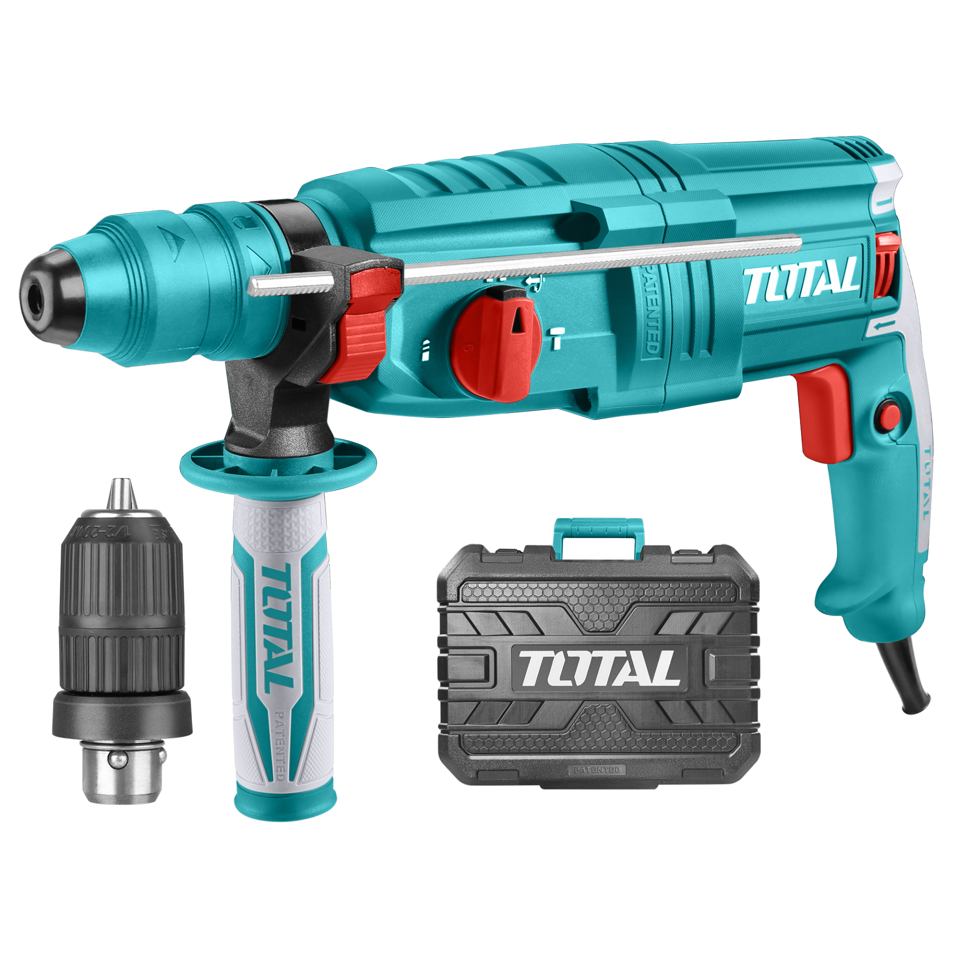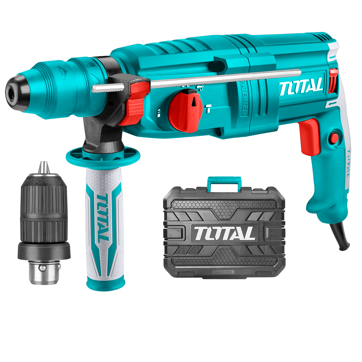 Voltage:220-240V~50/60Hz Input power:800W No-load speed:0-1100rpm Impact rate:0-4000bpm Impact energy:2.5J Max.drilling capacity: Concrete:26mm Steel:13mm Wood:30mm SDS Plus chuck system With 1pcs keyless quick-change chuck With 3 drills and 2 chisels With 1set extra carbon brushes Packed by BMC