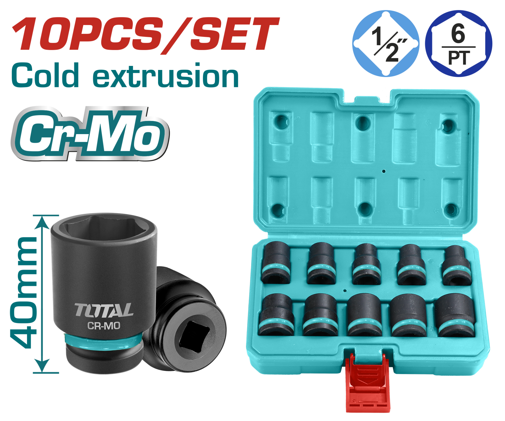 Total 10 PARÇA 1/2” ALTI KÖŞE DARBELİ LOKME SETİ