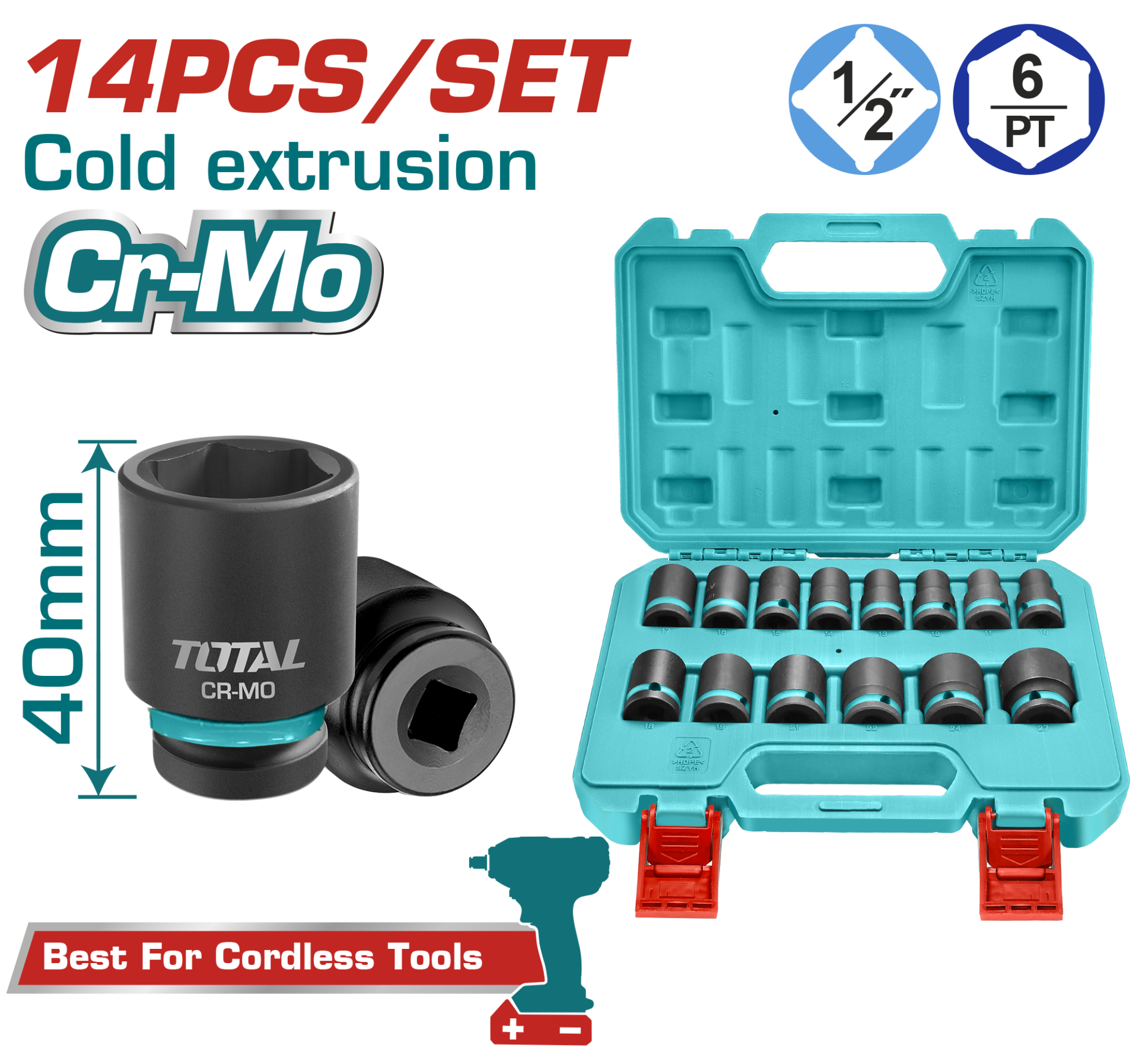 Total 14 PARÇA 1/2” ALTI KÖŞE DARBELİ LOKMA SETİ