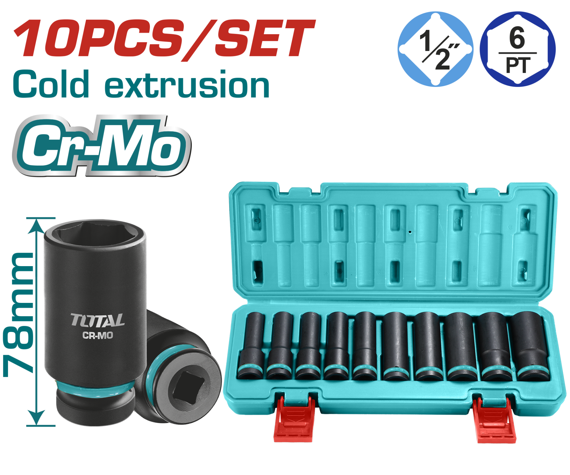 Total 10 PARÇA 1/2” ALTI KÖŞE DARBELİ DERİN LOKMA SETİ