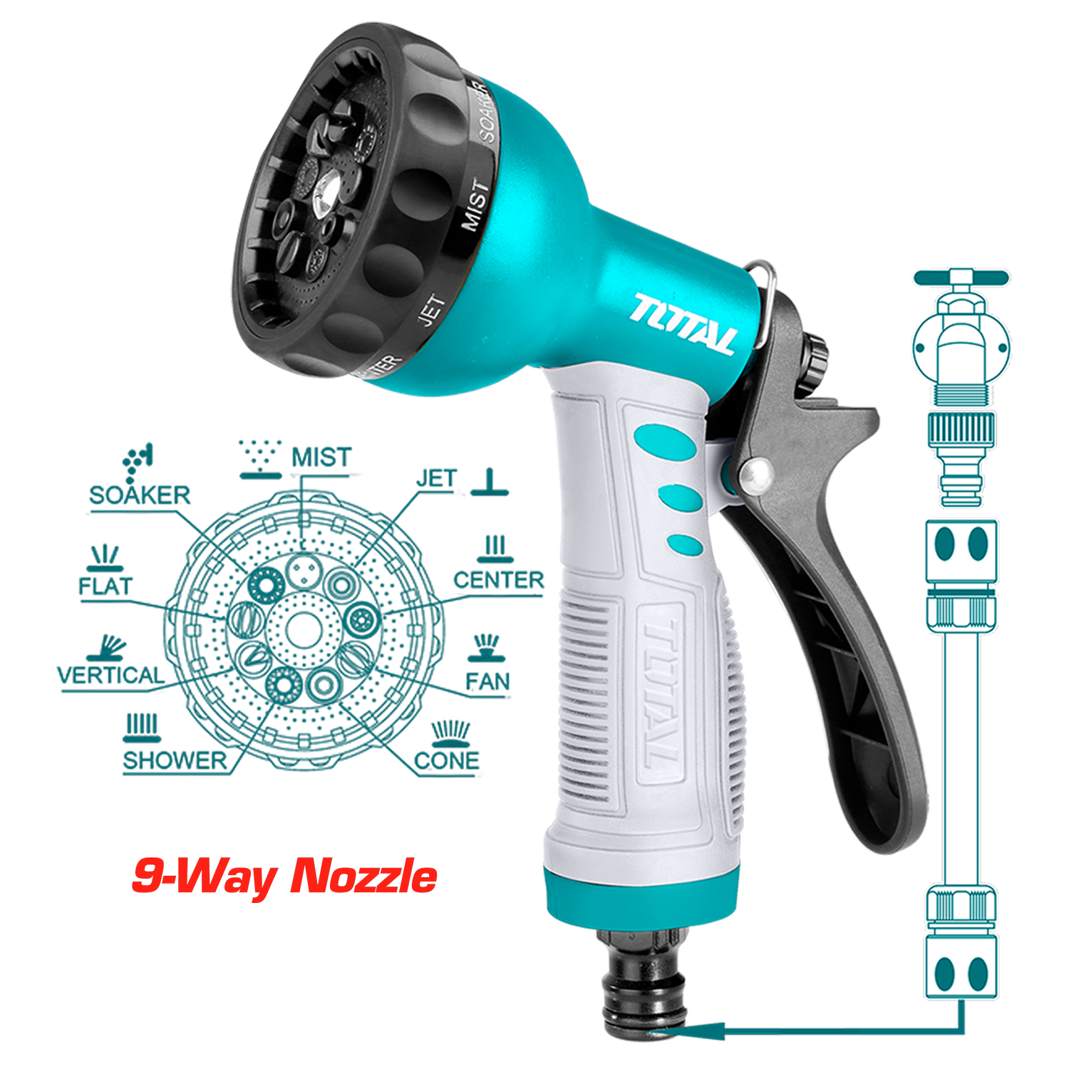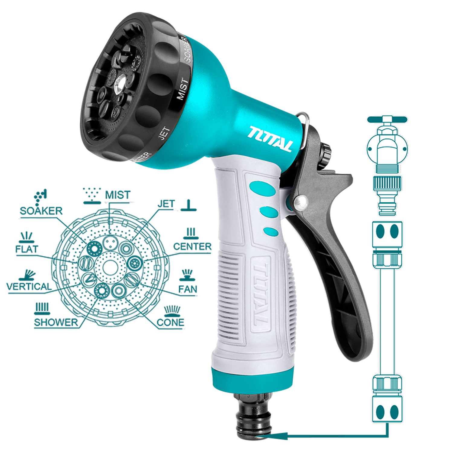 Sulama işlerinizde kolaylık sağlayacak ürün ile 9 farklı püskürtme seçeneği dahilinde kullanım sağlayabilirsiniz.