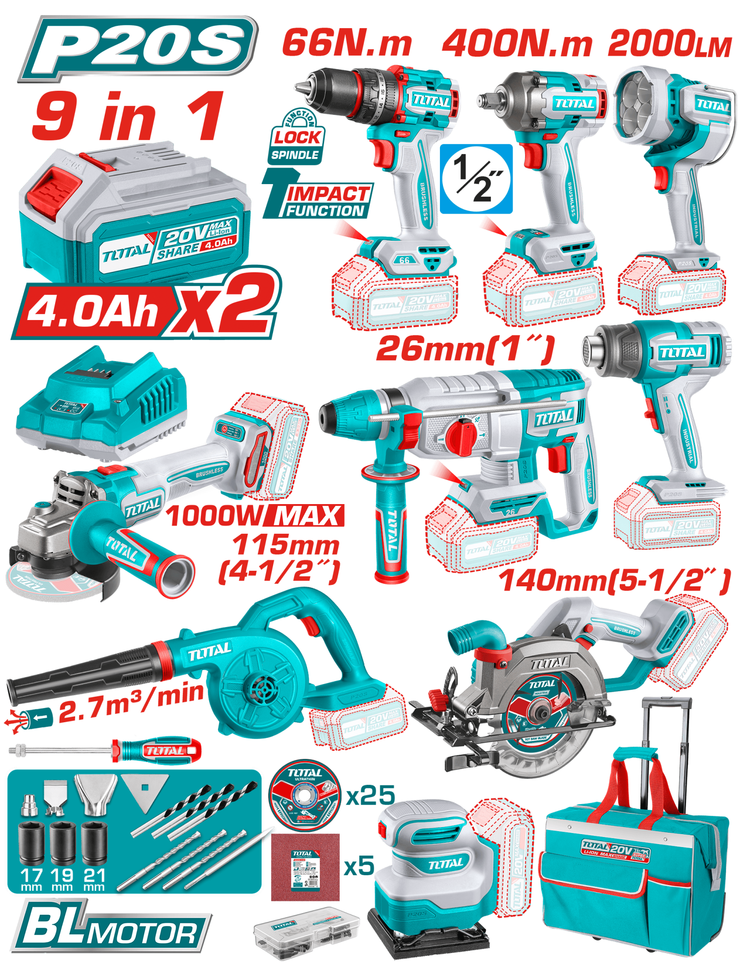 Total AVANTAJ 9 LU SET - MATKAP, SOMUN SÖKME, IŞIK, KIRICI, TAŞLAMA, SICAK HAVA TABANCASI, ÜFLEME, DAİRE TESTERE