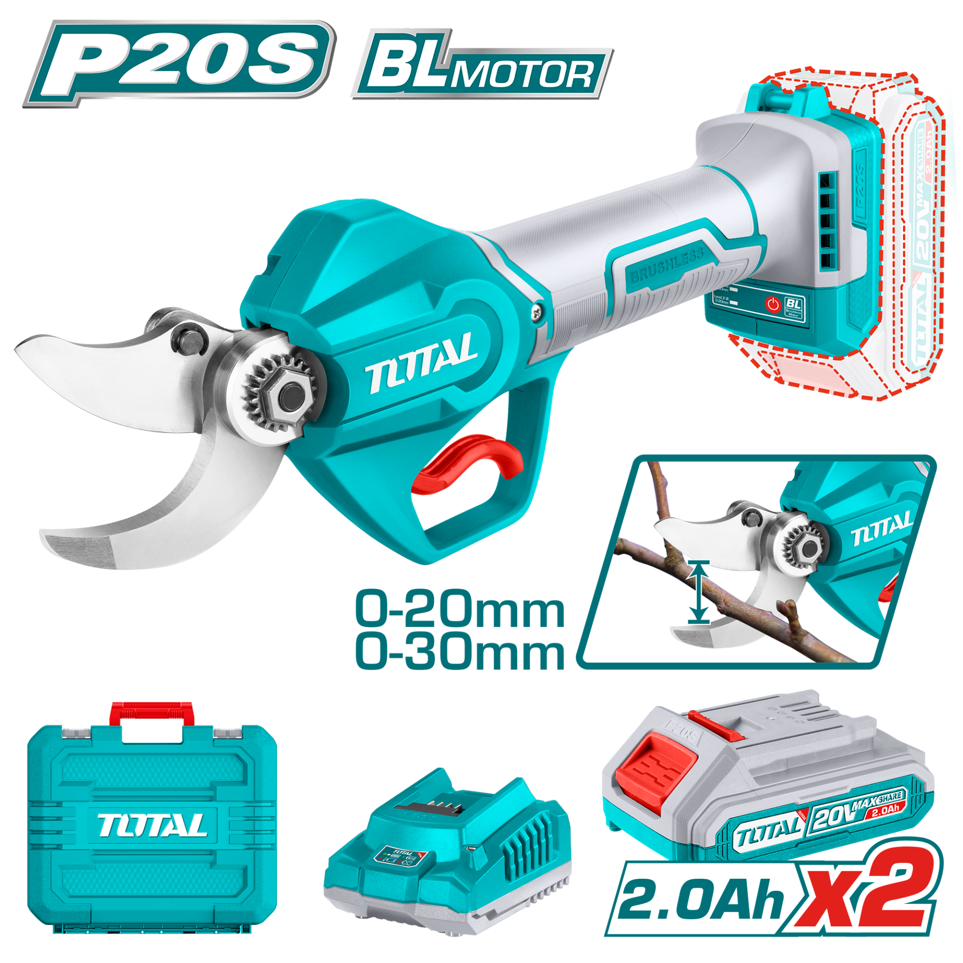 Total LI-ION AKÜLÜ BUDAMA MAKASI 2x2.0ah